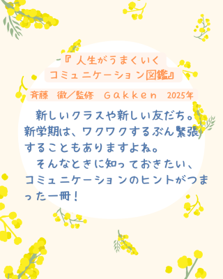 絵本『いつものあさのあいうえお』うえだまこと/作(あかね書房)や、『知れば知るほど好きになるからだのひみつ』(高橋書店)、『「自分の気持ち」を表すことば図鑑』ひきたよしあき/著(大和出版)等、楽しい本が揃っています。ぜひ、ご利用ください♪
