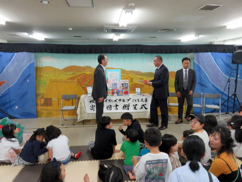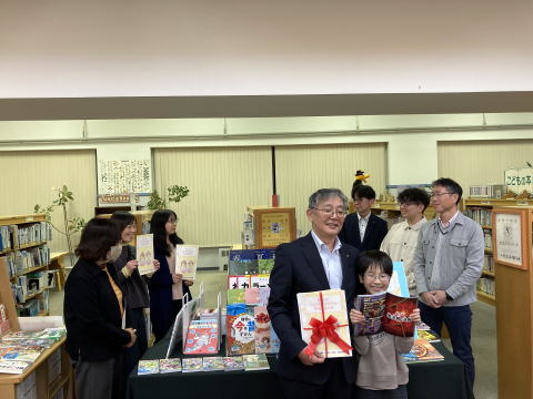令和7年6月に開催された、「第51回 古本市」の収益金により購入した、絵本・児童図書80冊(234,000円相当)が、令和7年10月30日に第51回古本市実行委員会(実行委員長 大宮勇吾)より寄贈されました。